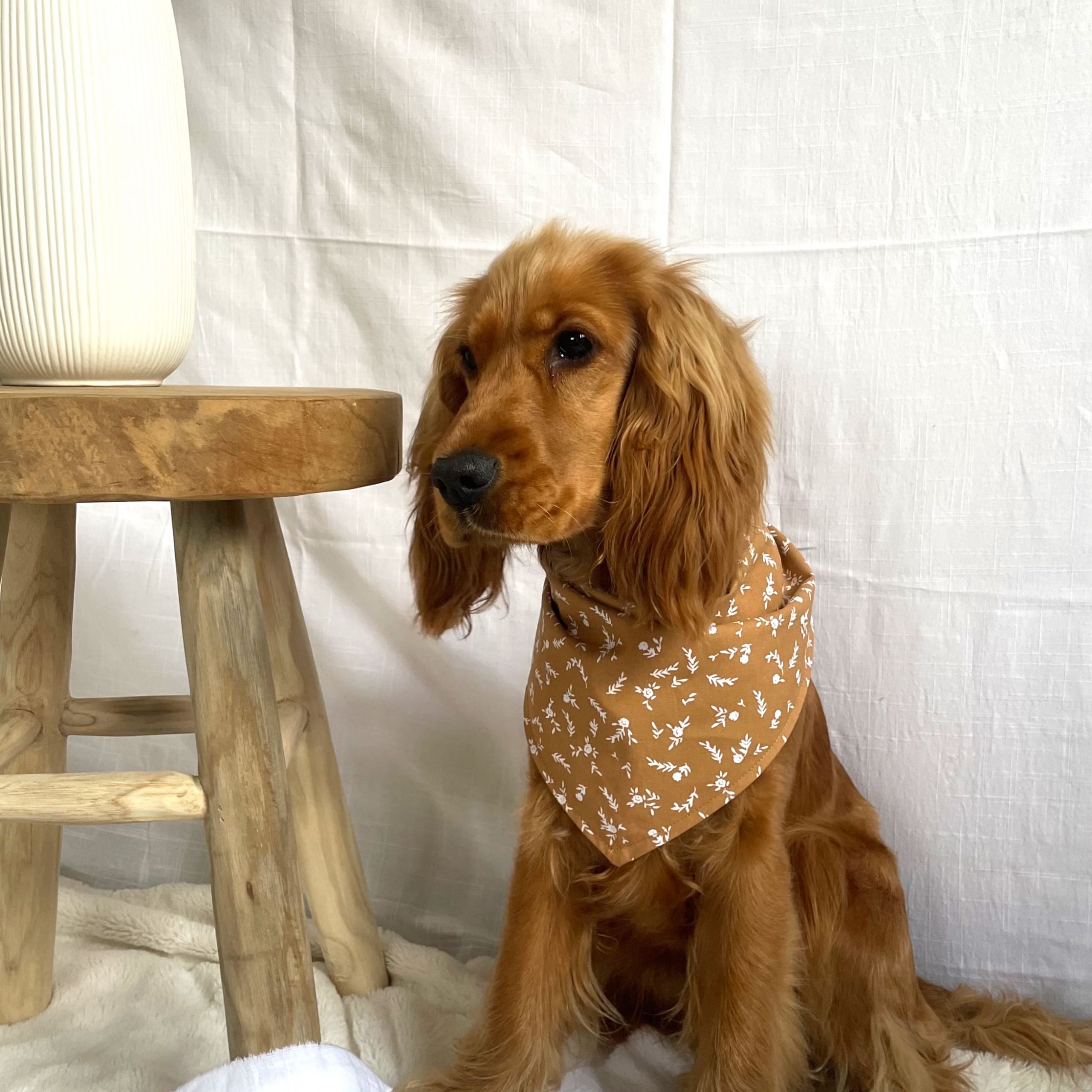 Pour information, Uska est une race cocker et porte le bandana en taille M (tour de cou entre 30 et 39cm)
