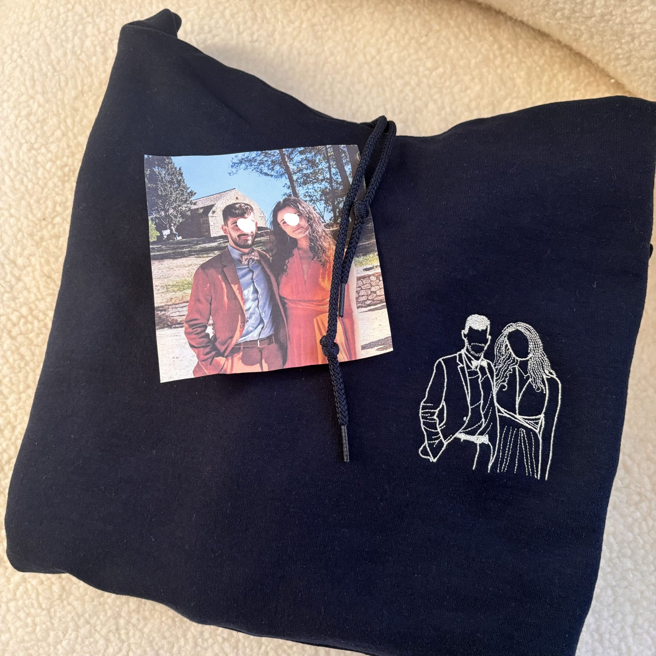 Transformez vos plus belles photos en broderie, directement sur un sweat confortable et stylé. Que ce soit un moment en famille, votre animal de compagnie, ou une photo de couple, chaque pièce devient une création unique, pleine d’émotion.